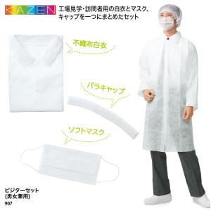 ビジター セット 工場見学 訪問者 白衣 マスク キャップ 男女兼用 お得、ビジネス、衛生、不織布、使い捨て KAZEN 907 爆買