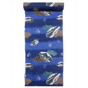 メンズ モス長襦袢 反物 nj-131 花紺地・扇山水柄【訳有り】