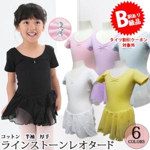 ★(B級品)(訳有り)(返品不可)バレエレオタード 子供用 スカート付 ラインストーン 半袖