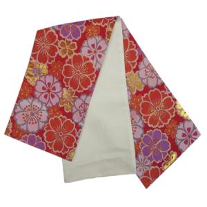 【訳有り 少難あり】 袋帯 お仕立て上がり 全通柄 金糸入り 赤色地八重桜紋様 振袖 成人式 長尺 H・L アッシュエル