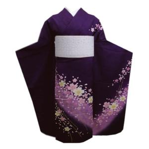 【訳有り 少難あり】 振袖 正絹 お買上 お仕立上がり 単品 濃紫色地薄紫ぼかし桜小さくら花吹雪 L 成人式 購入 リメイク 生地 古典柄 和柄