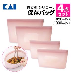 貝印 シリコーン保存バッグ 自立型 オールドラズベリー 4個セット 450ml×2個 1000ml×2個 020RC9204 電子レンジ対応 食洗機対応 冷凍 冷蔵 湯煎 便利 時短 エコ