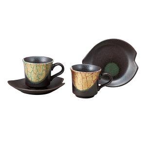 九谷焼 コーヒーカップ 金箔彩 ペア ( 退職祝い 定年 セット ソーサー ティーカップ セット 九谷焼 結婚 出産 内祝い 引き出物 金婚式 誕生日プレゼント )