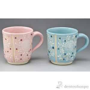 ペアマグカップ 淡彩三島 ( 退職祝い 定年 プレゼント デザイン マグ オリジナル タンブラー セット 清水焼 京焼 結婚 出産 内祝い 引き出物 金婚式 )