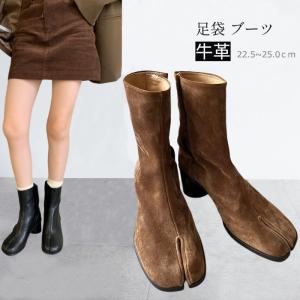 足袋ブーツ ブーツ レディース ショートブーツ タビブーツ 足袋 5cmヒール スエード 牛革 太ヒール ミドルブーツ サイドファスナー 疲れない 履きやすい 美脚