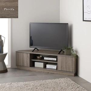 Luxen コーナーテレビボード 幅110cm(グレージュ/木目調)角置き 耐荷重50kg テレビ台 ローボード TV台 コードスリット コード穴 開き扉 可動棚 収納 RASIK