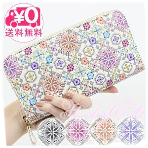 長財布 ラウンドファスナー 花菱 浅草文庫 =本革 友禅染 ラウンド長財布 花菱ラウンド束入 花柄 財布 ピンク/スカイブルー/ワイン/ブラック/