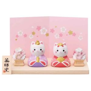 雛人形 コンパクト 陶器 小さい 可愛い/ 錦彩ねこ雛 /ミニチュア 初節句 お雛様 おひな様