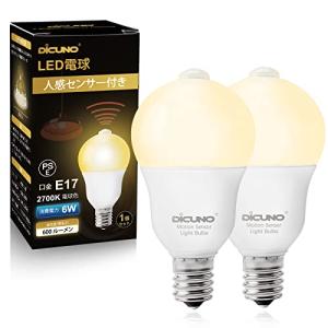 DiCUNO E17口金 LED電球 人感センサー 60形相当 電球色 6W 600lm 2700K 明暗センサー付き 赤外線センサ 消し忘れ防