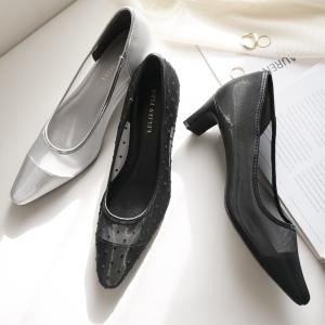 シアー ビジュー ミュール ドット ローヒール ポインテッドトゥ シースルー レディース 春夏 疲れない 歩きやすい アミアミ