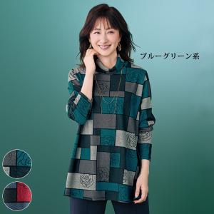 チュニック 大人可愛い おしゃれ 秋冬 ミセス シニア ファッション 40代 50代 60代 70代 80代 ボカシプリントリブ使いチュニックプルオーバー