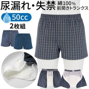 2枚組 失禁パンツ トランクス メンズ 綿100% 大型防水パッド 薄手 吸水 尿漏れ 軽失禁 通気性 ちょい漏れ 頻尿 介護 おねしょ 下着 前開き 洗い替え ms-019