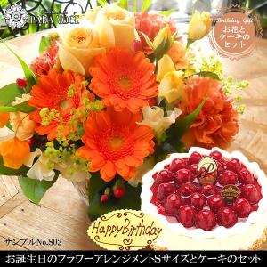 お誕生日のフラワーアレンジメントSサイズ ( No.S02 )と洋菓子店カサミンゴーの最高級ケーキとのギフトセット 花とスイーツセット ケーキと花のギフトセット