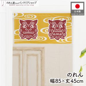 ショート丈 のれん 沖縄 85cm幅 45cm丈 シーサー ペア 黄色 イエロー 顔 琉球 ウチナー 暖簾 間仕切り(受注生産 46952)