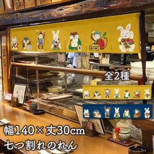 のれん 横幕 横長 暖簾 140cm幅 30cm丈 7つ割 カウンター 店頭用 店先 軒先 七福神動物 黄色 紺 店舗用 業務用(受注生産 95075 95076)