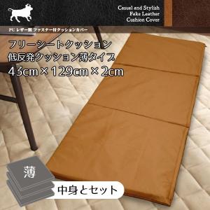 クッション 中身&カバーセット PUソフトレザー 3連 低反発ウレタン 薄タイプ フリーシートクッション キャメル 約43×129×2cm 合皮 飲食店 11339