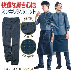 ボンユニ デニム調 パンツ テーパード ボトムス ズボン スラックス カジュアル おしゃれ 飲食店 接客 カフェ メンズ レディース 制服 ユニフォーム bo-22304