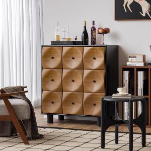 CAGUUU ヴィンテージ風 9マス木製キャビネット木製収納家具 引き出し付きサイドボード ナチュラルウッドデザイン 多機能収納