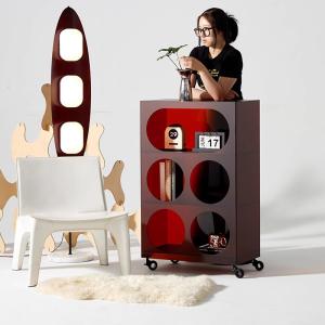 CAGUUU キャスター付きミニキャビネット 幅40×奥行40×高さ124 アクリル製 3段収納キャビネット おしゃれ スリムデザイン 書籍 雑貨