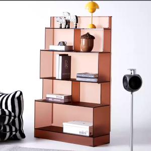 CAGUUU モダンデザイン 幅40×奥行31.5×高さ134.2 多機能アクリル製収納ラック 5段ステップデザイン 棚 組み立て簡単 リビング 書斎