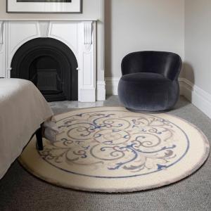 CAGUUU ニュージーランドウール100%ラウンドラグ 北欧風幾何学デザインプレミアムラグ防汚カーペット リビングラグ 北欧スタイルラグ