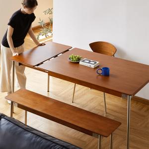 CAGUUU 伸縮式天然木ダイニングテーブル L140-180*W80*H76cm FASグレード材 北欧スタイルのモダンデザイン 調整可能テーブル