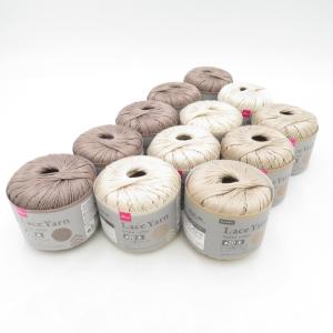 DAISO ダイソー 毛糸 12玉セット レース糸ソリッド 1玉20g 約80m 太 綿100% クリームベージュ サンドベージュ ミルクティーベージュ