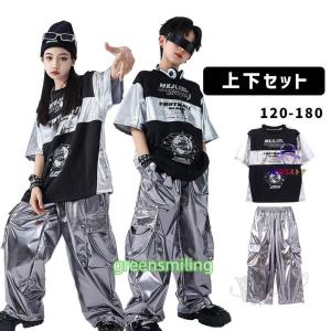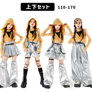 k-pop衣装 キッズダンス衣装 シルバー ユニセックス HIPHOP ブレイキン ヒップホップ 子供服 男の子 女の子 ロングパンツ ガールズ K-POP ステージ衣装 練習着