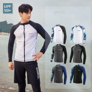ラッシュガード メンズ 長袖 ジップアップ トップス 水陸両用 水着 プチハイネック 薄手 上着 羽織 水着の上に着る服 黒 白