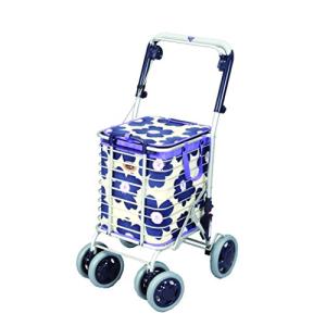 座れるカート アルミショッピングカート スワレル ユーバ産業 AS-0275 花柄ネイビーブルー色