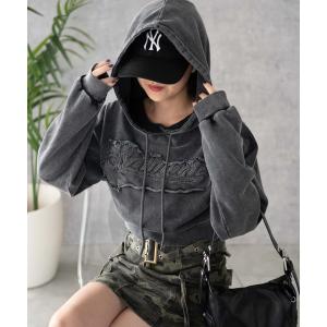 パーカー WEGO/ロゴアシッドウォッシュパーカー レディース