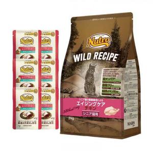 【レビュー記載でおまけパウチ1袋同梱】ニュートロ 猫 エイジングケア セット ワイルド レシピ チキン シニア猫 2kg + パウチ 5袋