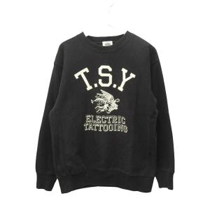 TATTOO STUDIO YAMADA COLLEGE SWEATSHIRT TSY BLACK×WHITE タトゥースタジオ ヤマダ カレッジスウェット L 黒 ブラック 長袖