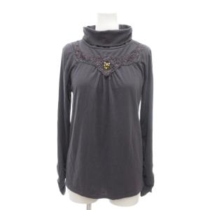 アクシーズファム axes femme 美品 カットソー ロンT タートルネック 長袖 レース装飾 M チャコールグレー /YJ ■GY59 レディース