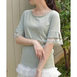 tシャツ カラーチュールレースプルオーバー レディース