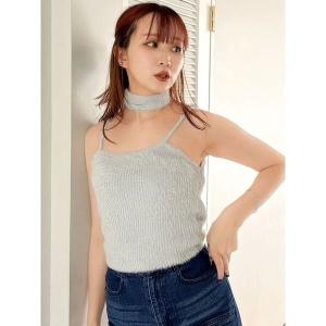 キャミソール チョーカー付ミニシャギーニットキャミソール