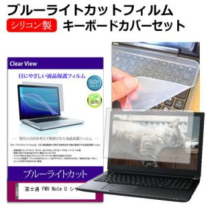 富士通 FMV Note U シリーズ [14インチ] キーボードカバー キーボード シリコン フリーカットタイプ ブルーライトカット 光沢 液晶保護フィルム セット 互換品