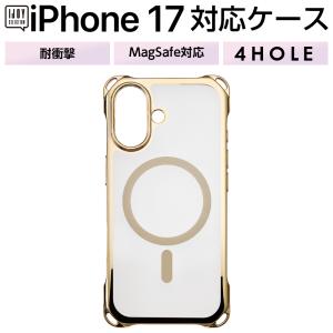iPhone17 ケース クリア ゴールド メタリック ストラップホール 四角 ショルダー MagSafe マグセーフ 対応 耐衝撃 ソフト フチ高設計 カメラ保護 iPhone 17