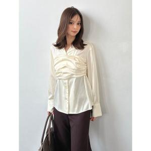 ブラウス シャツ サテンレイヤードストラクチャーブラウス レディース