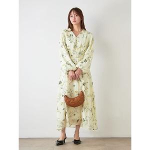 ワンピース ウエストシャーリングプリントワンピース