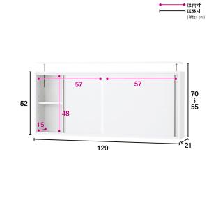 光沢仕様 引き戸壁面収納本棚 幅120奥行21突っ張り上置き高さ55-70(本体52)cm 本棚 ラック シェルフ CD DVDラック 628028