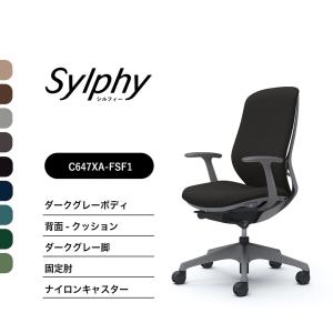 【新色登場】オカムラ シルフィー C647XA クッションタイプ ハイバック 固定肘 ダークグレーボディ ダークグレー脚 前傾機能付 ナイロンキャスター