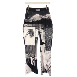 メゾンスペシャル MAISON SPECIAL フォトコラージュパンツ フレア スラックス イージー ウエストゴム ストレッチ プリント 36 黒