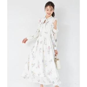 トッコクローゼット tocco closet ラッフルフリルオープンショルダーボタニカルフラワープリントワンピース