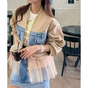 ブルゾン アウター デニム切り替えフリル前ジップブルゾン レディース
