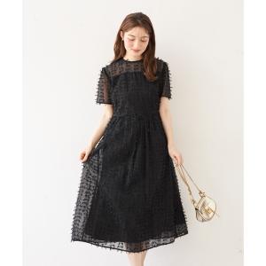 ワンピース ウエスト後ろりぼん付きシアーフリンジワンピース