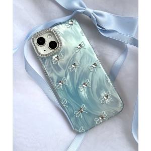 スマホケース WEGO/ビジューリボンiphoneケース(サックス)