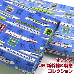 JR 新幹線・特急 切手柄 オックス 50cm単位 | 切売り 切り売り 生地 布 布地 コットン100% 電車 特急 鉄道 車両 ドクターイエロー N700系 トレイン 通園 通学
