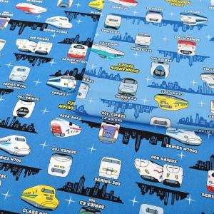 キャラクター 生地 布 JR特急・新幹線 ( ブルー系 ) 柄番号31 ( 2024 ー 2025 ) オックス ( 綿100% ) 生地幅−約108cm a-8000-34a-kk-7946