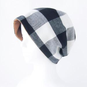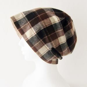 抗がん剤 帽子 ケア帽子 女性 ゆったり暖かリバーシブルの帽子 黒チェック キャメル 起毛
